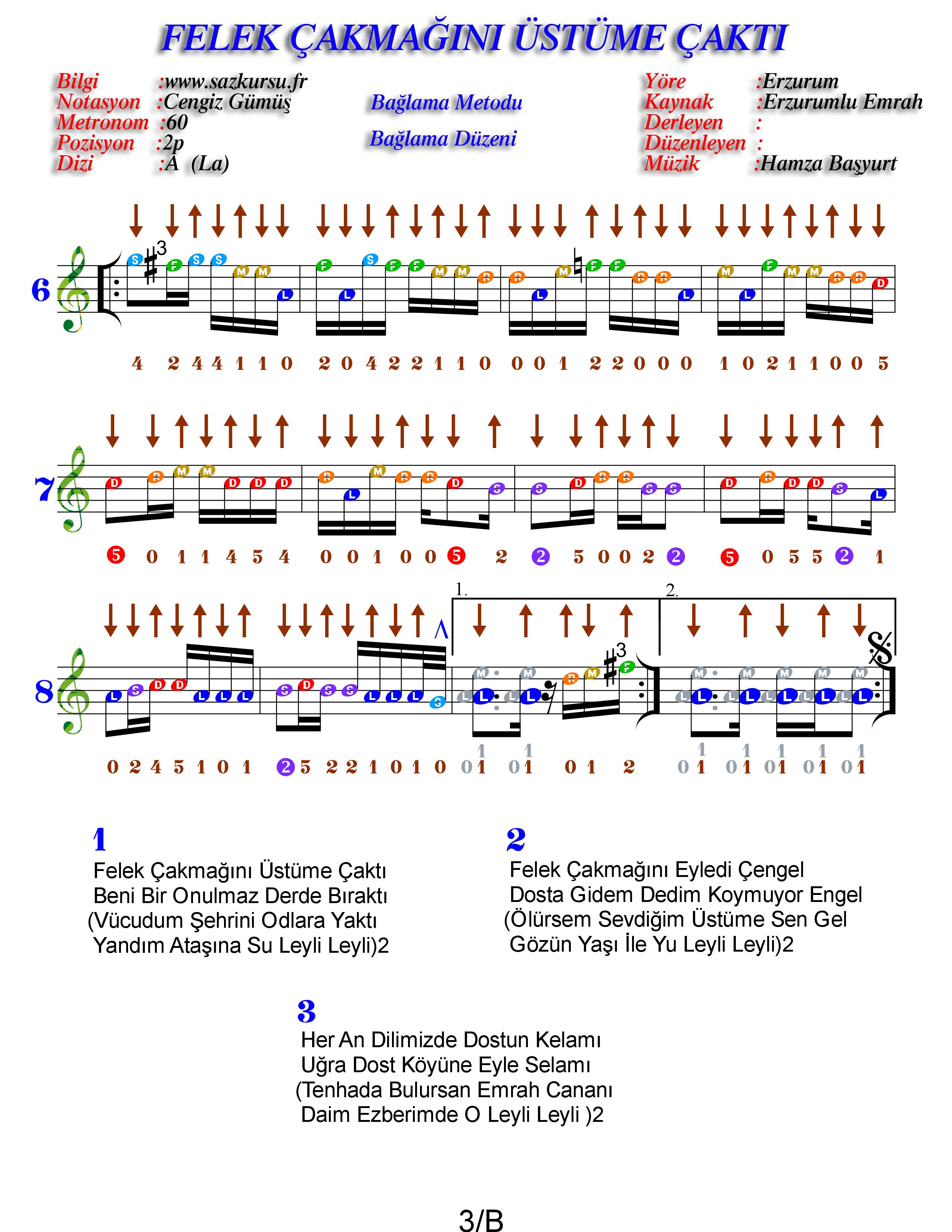 Felek Çakmağını Üstüme Çaktı Orta Düzey Renkli Özel Türkü Notaları 29 Ocak 2026 Görüntüleme: 16 Sonraki