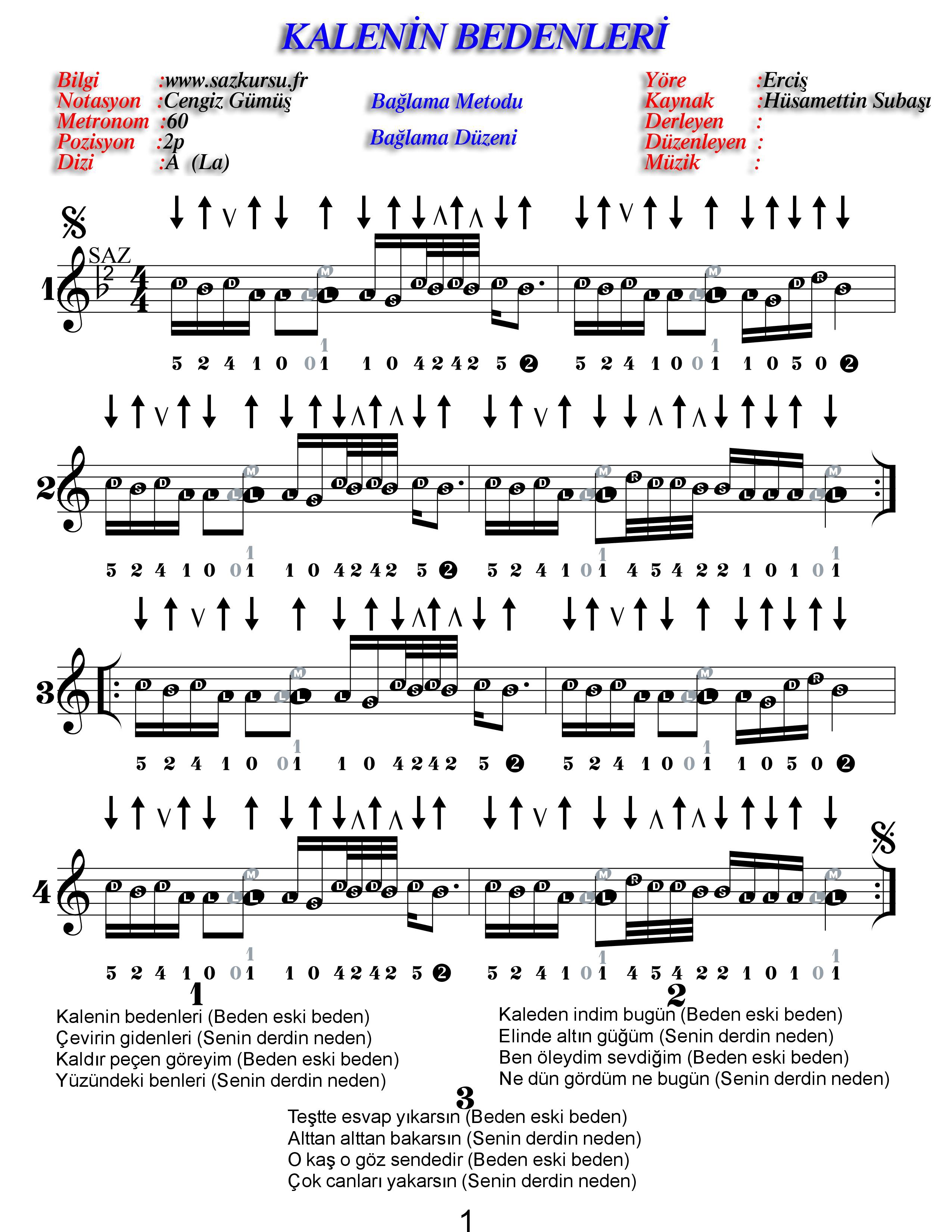 Kalenin Bedenleri İleri Düzey Renksiz Özel Türkü Notaları 08 Ocak 2026 Görüntüleme: 38 Önceki Sonraki