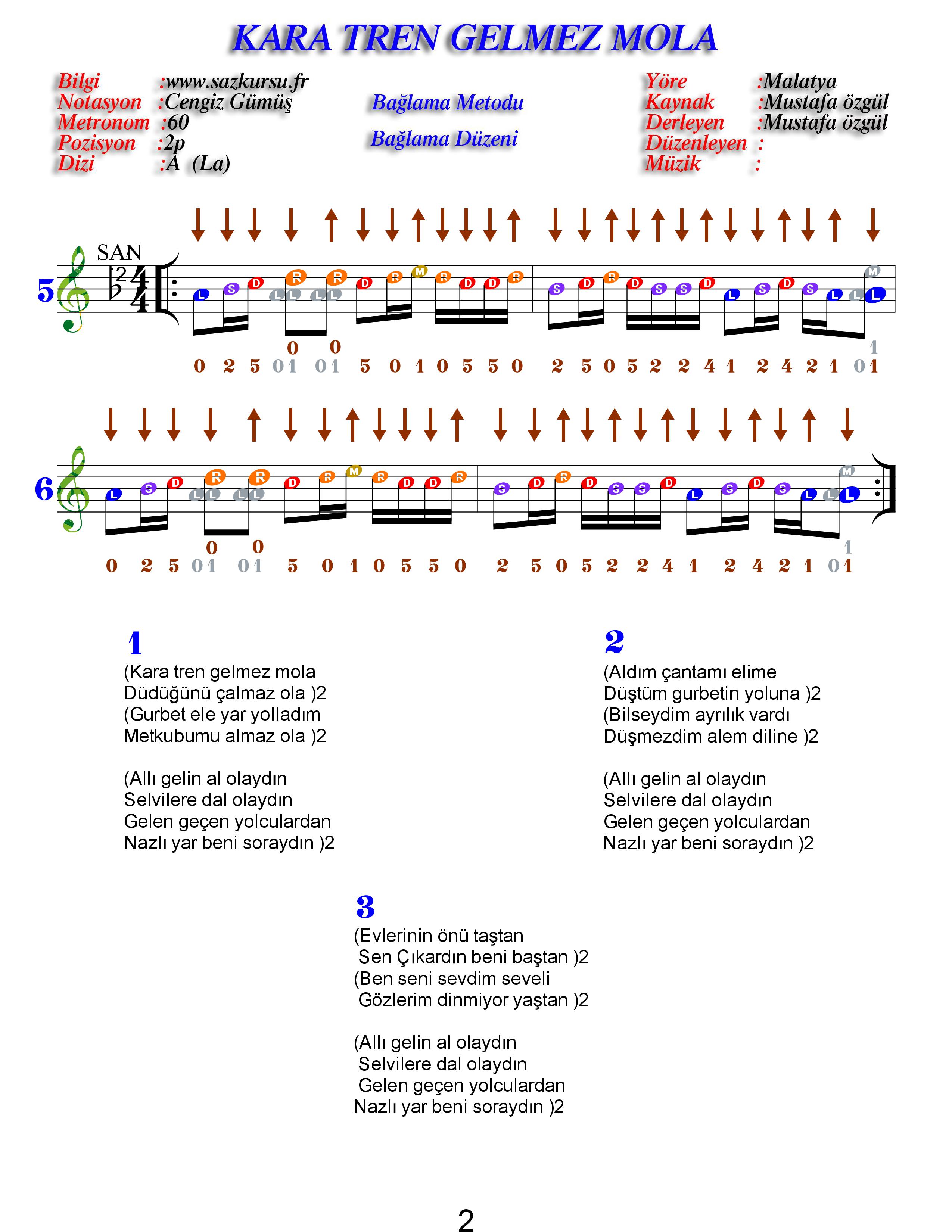 Kara Tren Başlangıç Düzeyi Renkli Özel Türkü Notaları