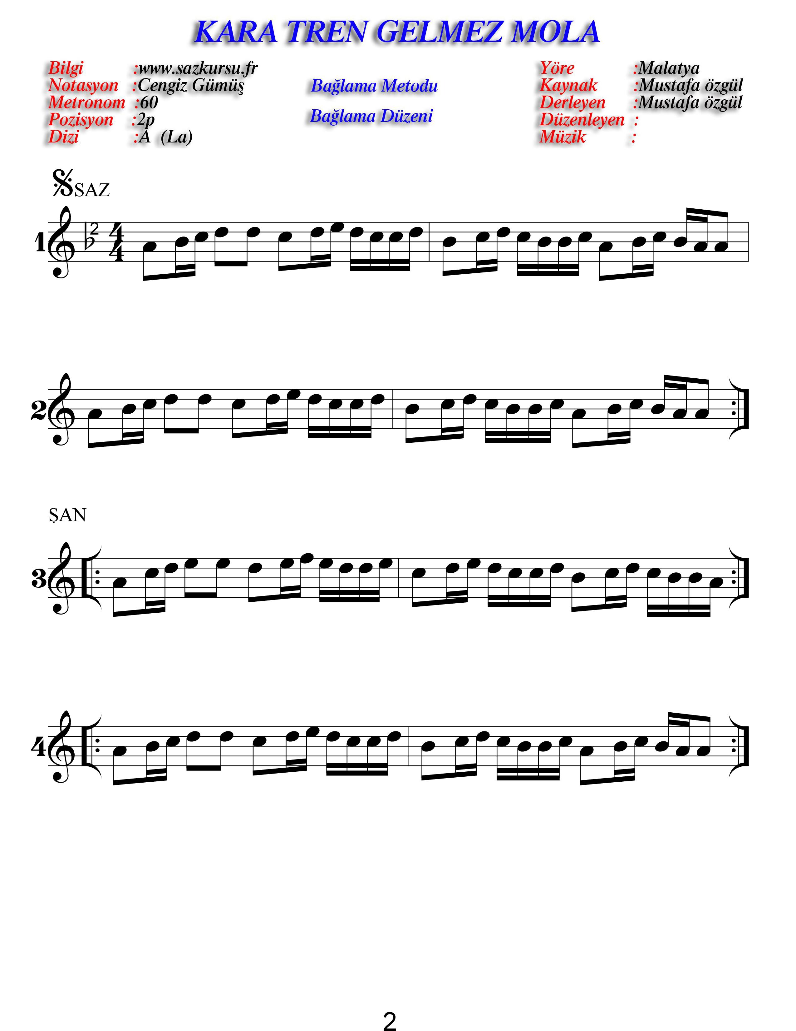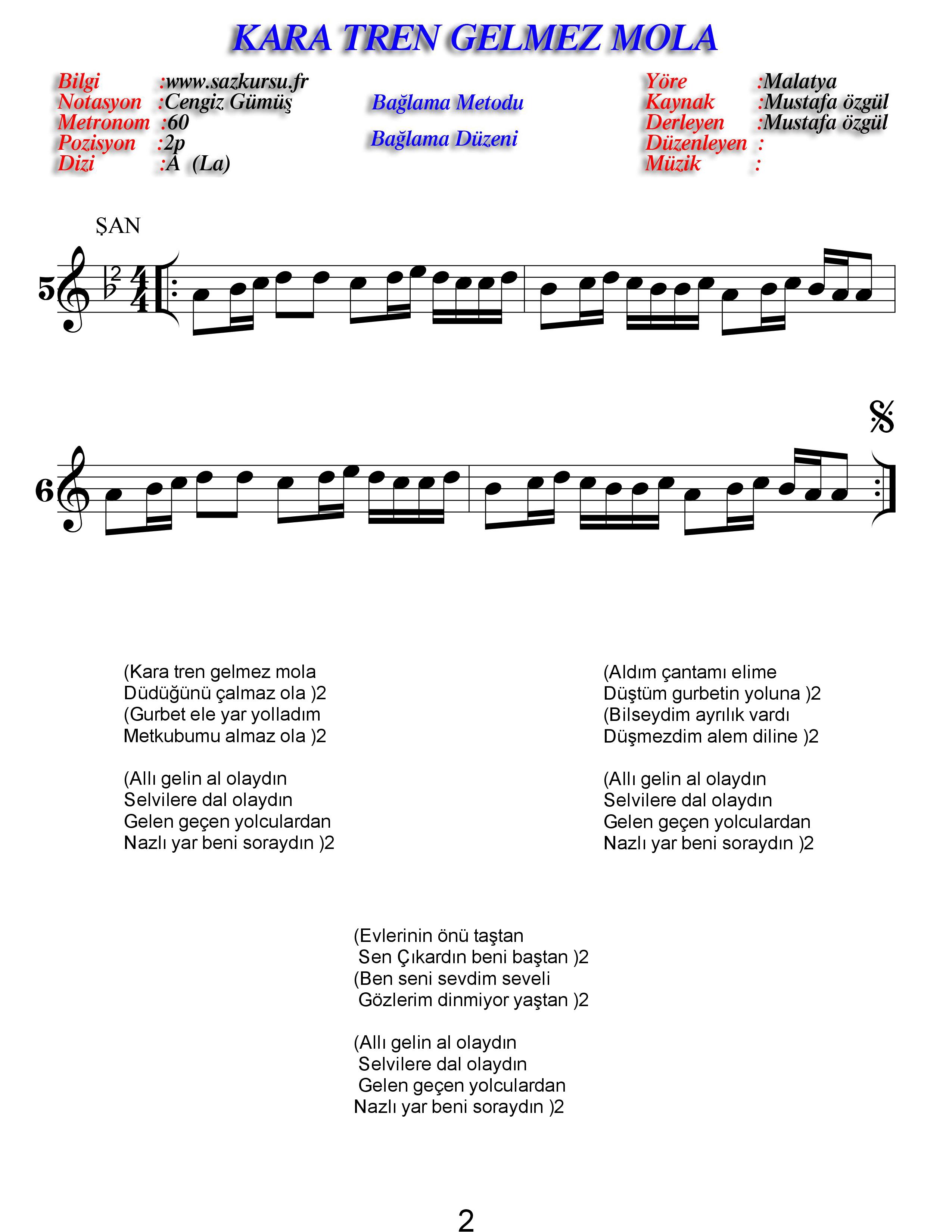 Kara Tren Başlangıç Düzeyi Sade Türkü Notaları