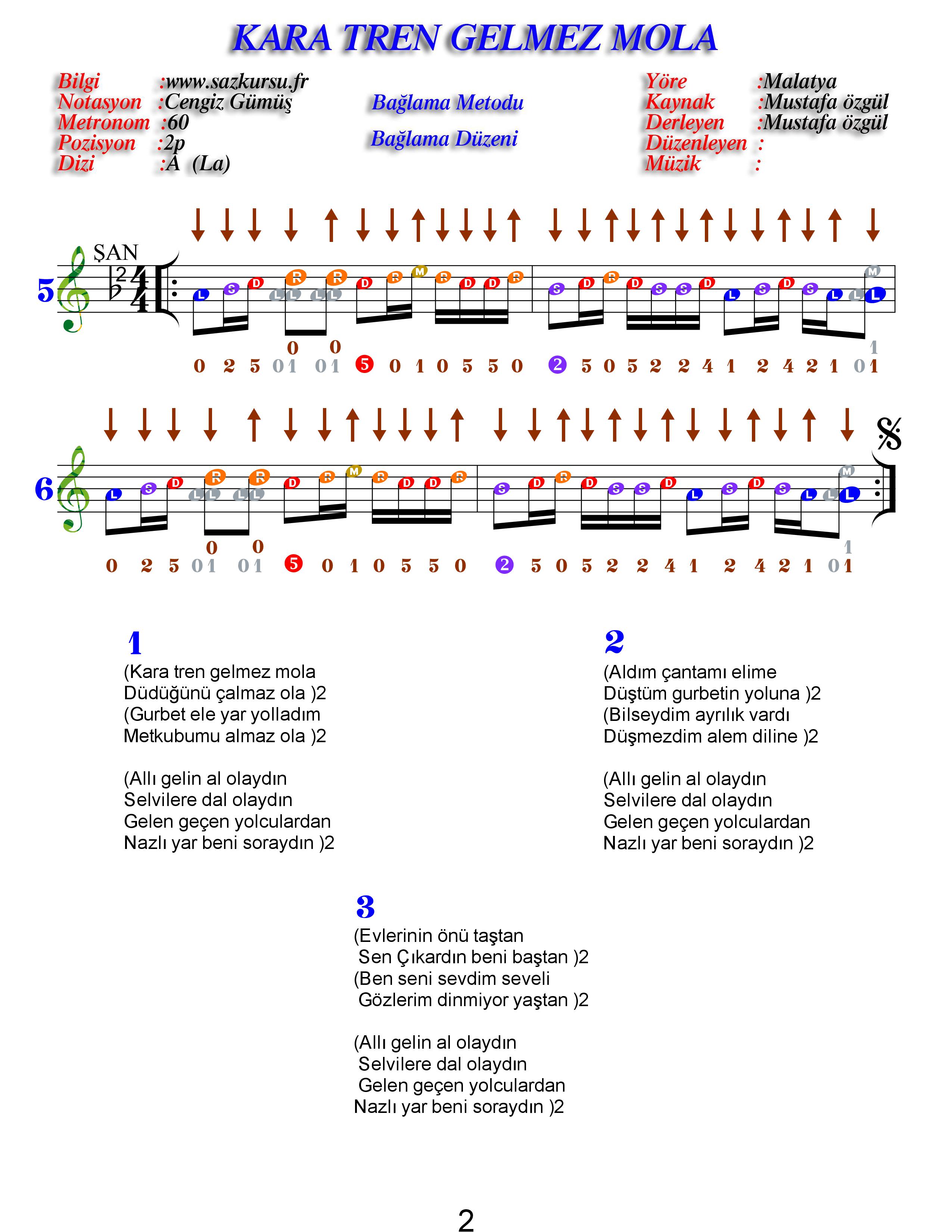 Kara Tren Orta Düzey Renkli Özel Türkü Notaları