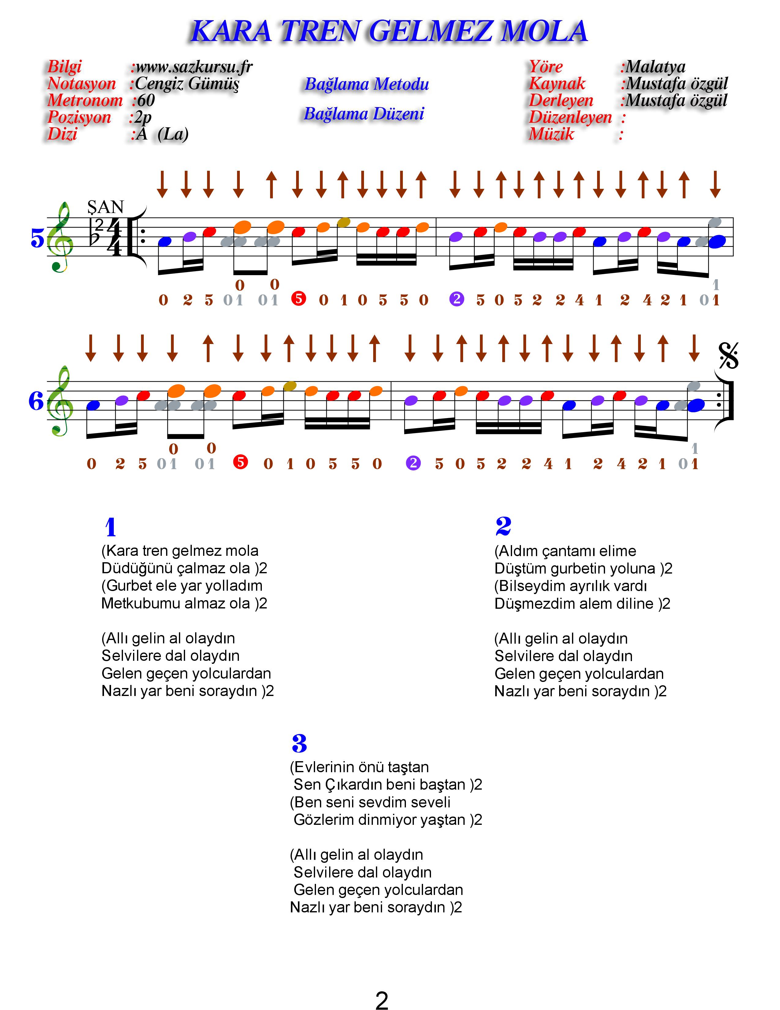 Kara Tren Orta Düzey Renkli Türkü Notaları
