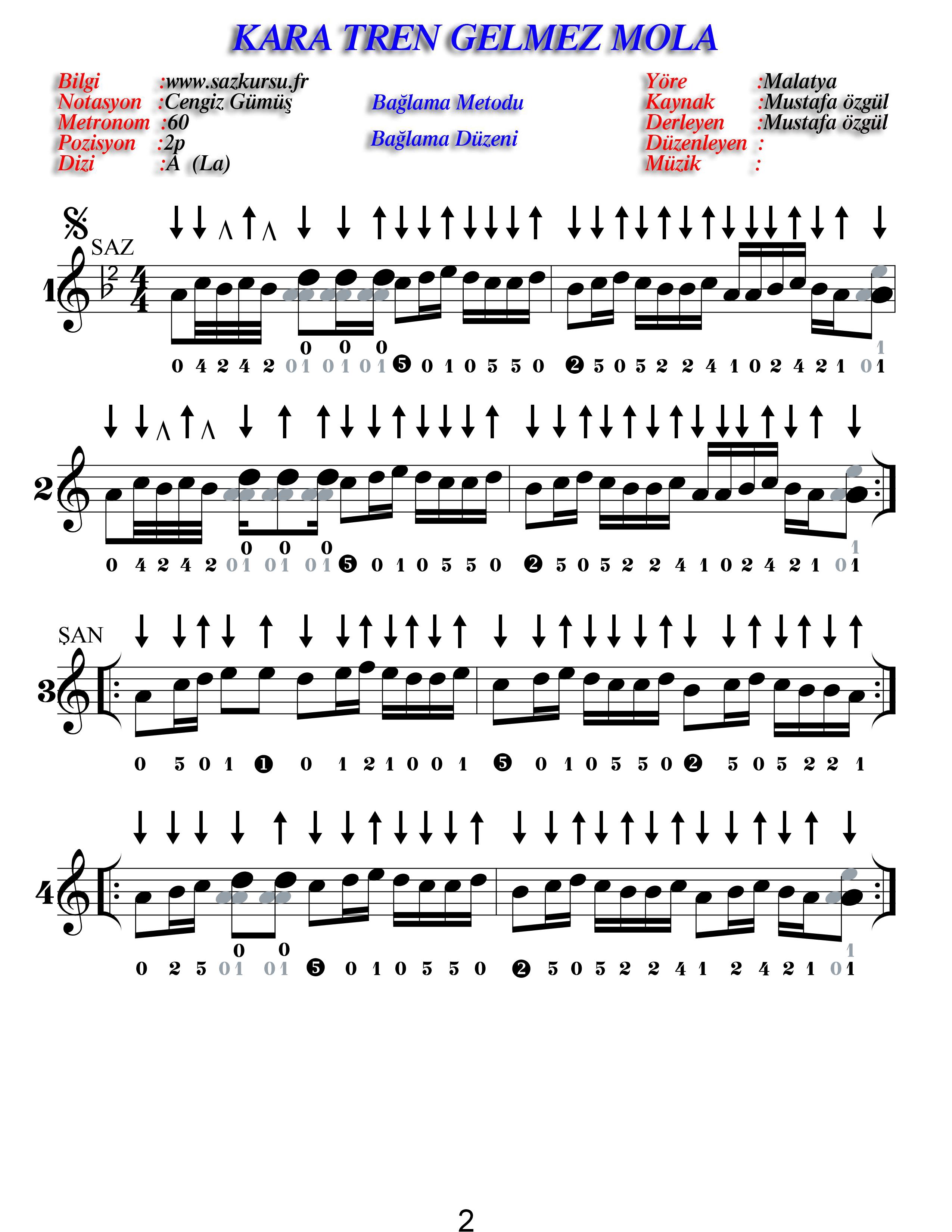 Kara Tren Orta Düzey Renksiz Türkü Notaları