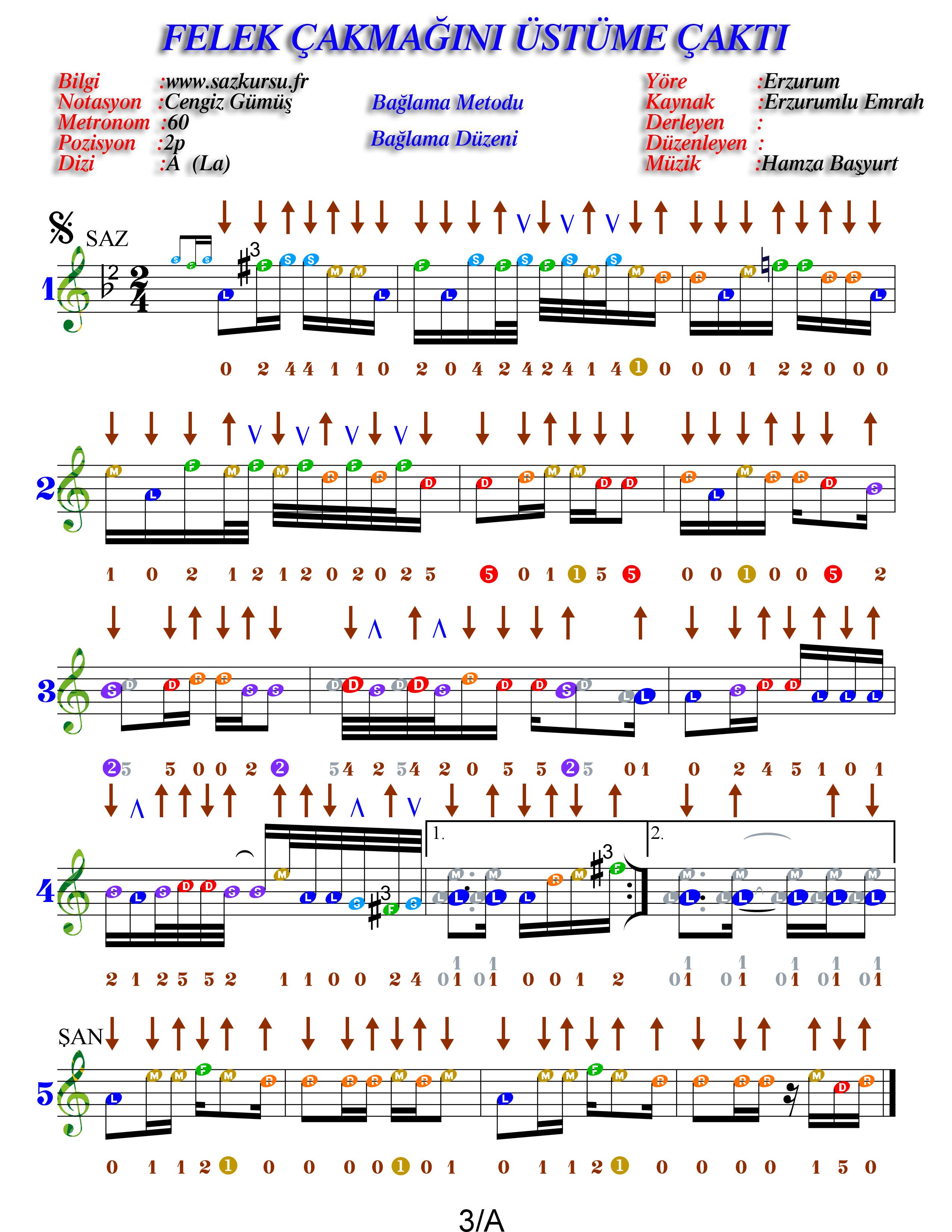 Felek Çakmağını Üstüme Çaktı İleri Düzey Renkli Özel Türkü Notaları 29 Ocak 2026 Görüntüleme: 43 Önceki Sonraki