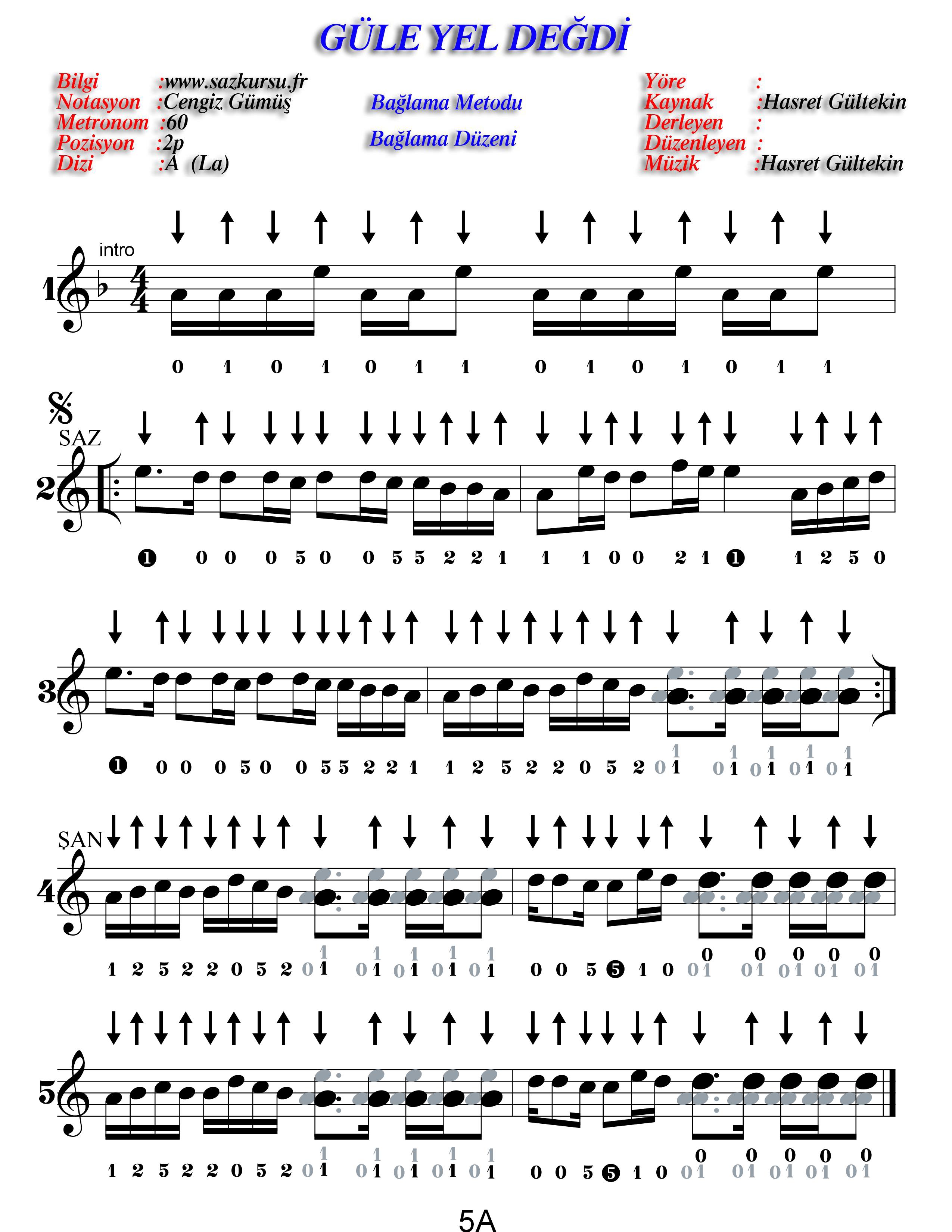 Güle Yel Değdi Başlangıç Düzeyi Renksiz Türkü Notaları