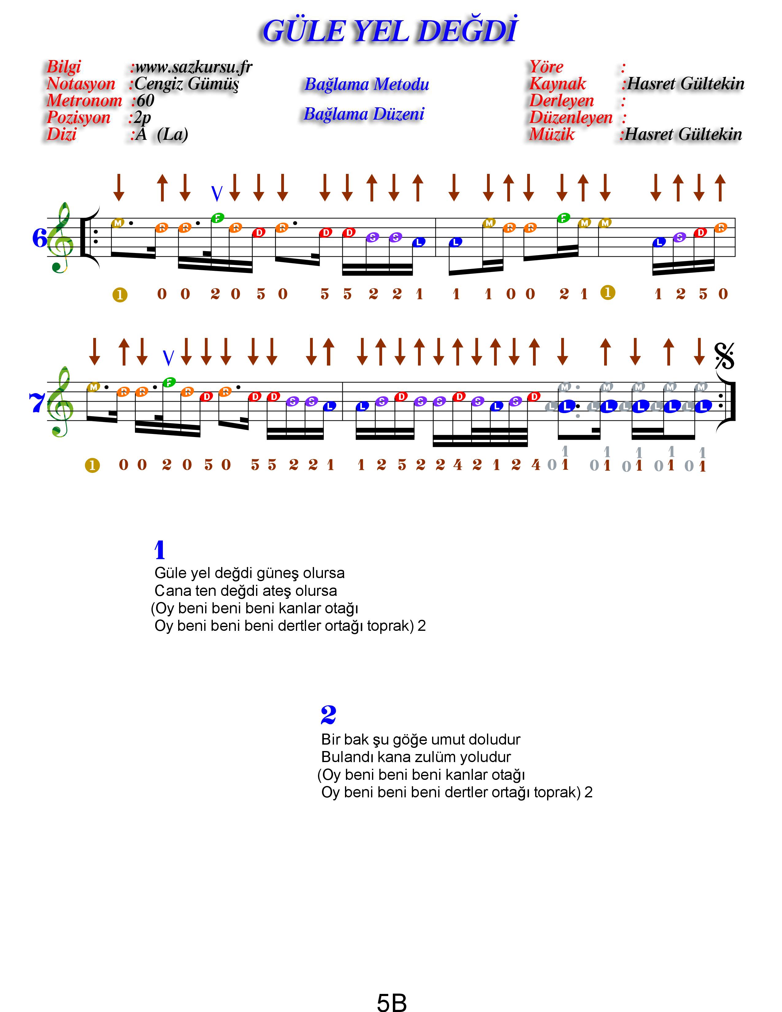 Güle Yel Değdi İleri Düzey Renkli Özel Türkü Notaları