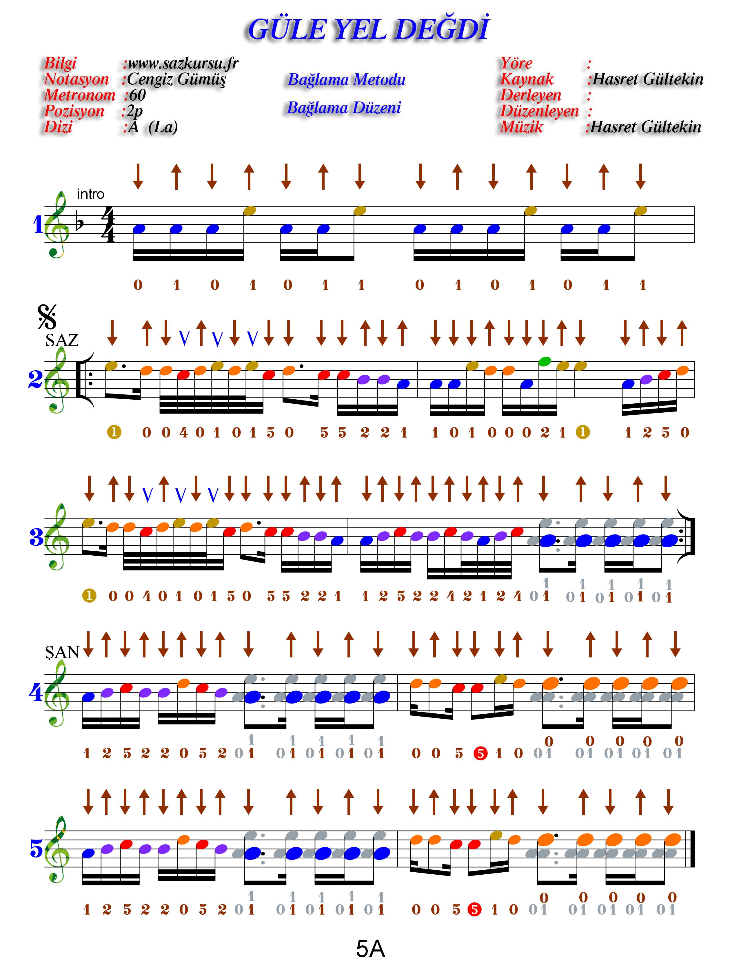Güle Yel Değdi İleri Düzey Renkli Türkü Notaları