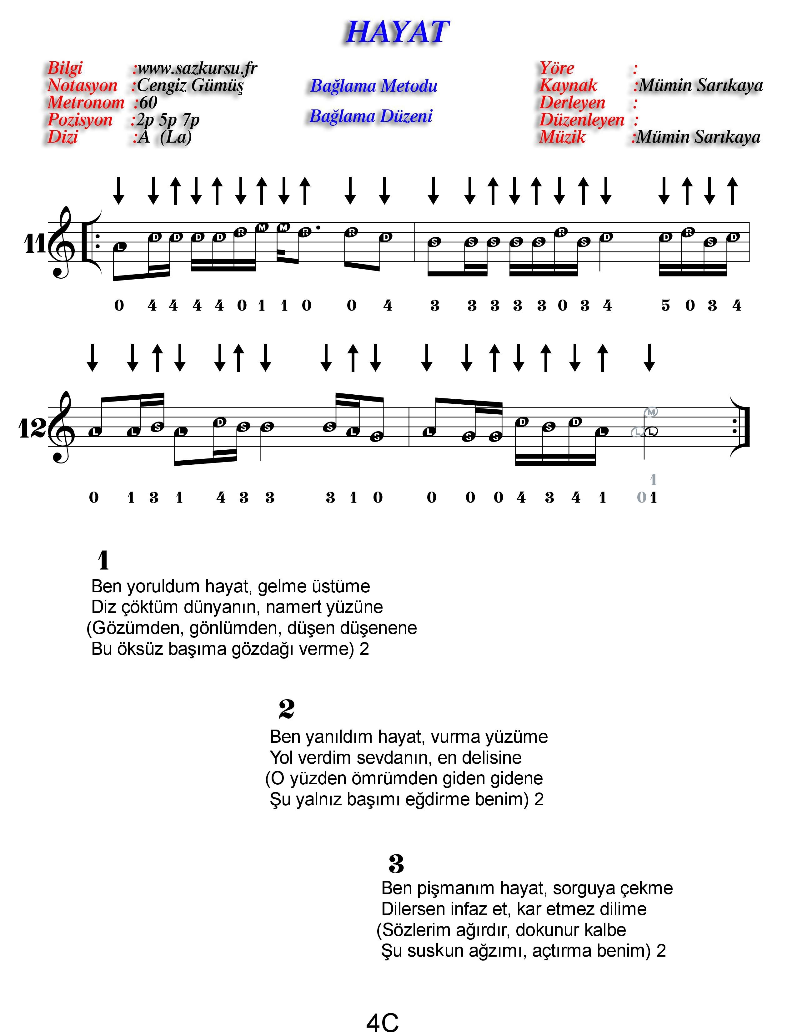Hayat Orta Düzey Renksiz Özel Türkü Notaları
