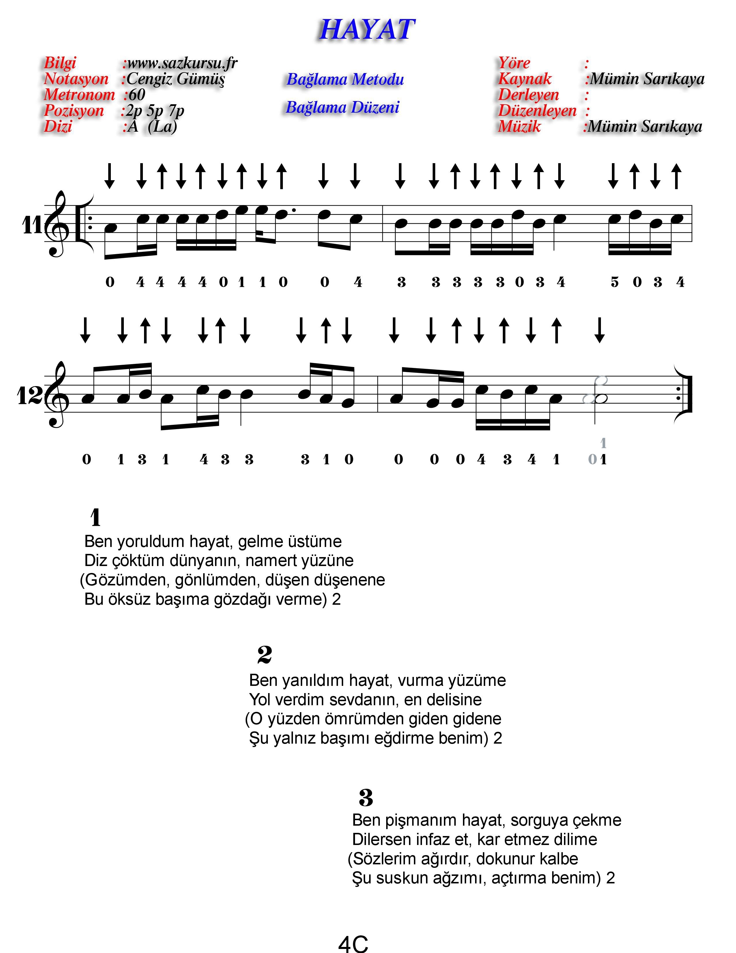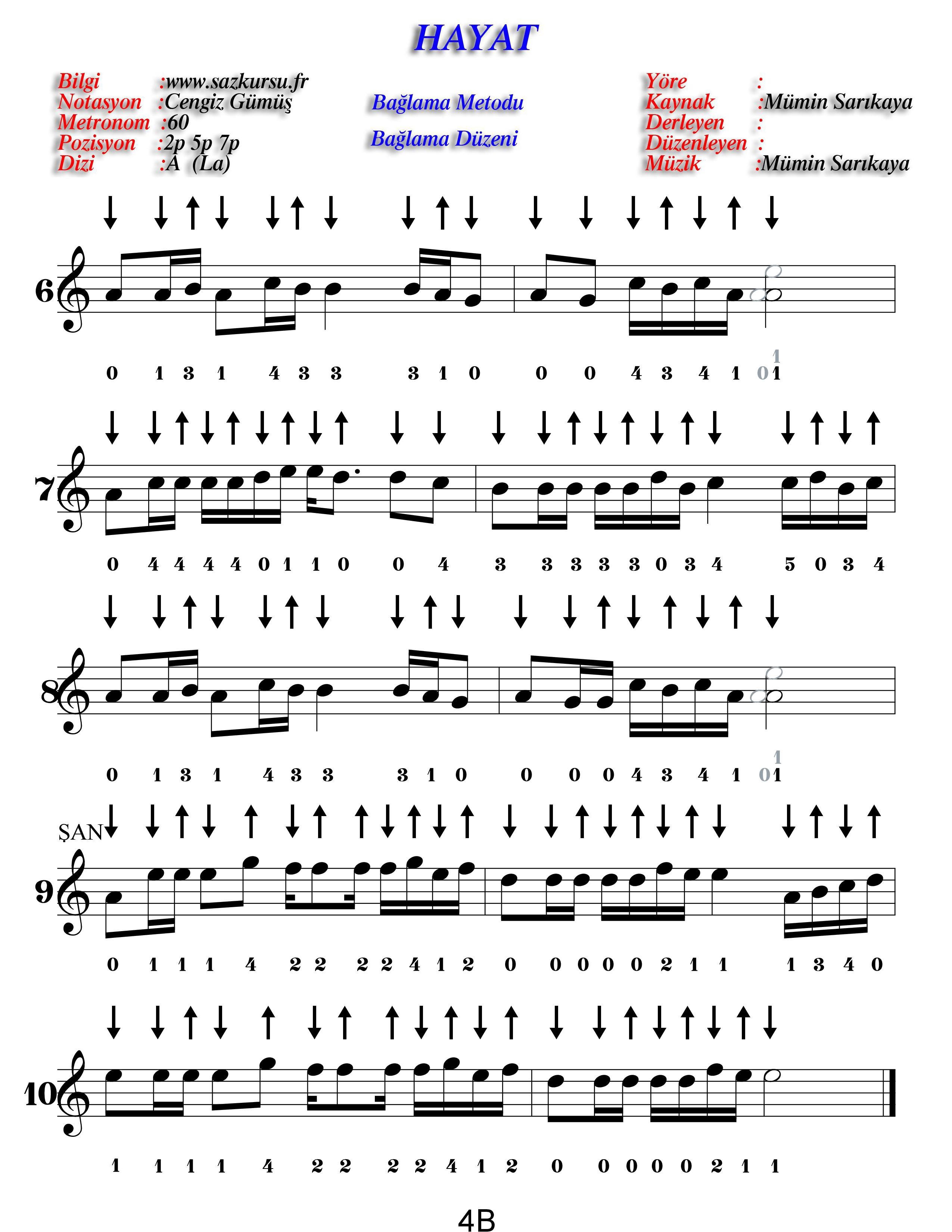 Hayat Orta Düzey Renksiz Türkü Notaları