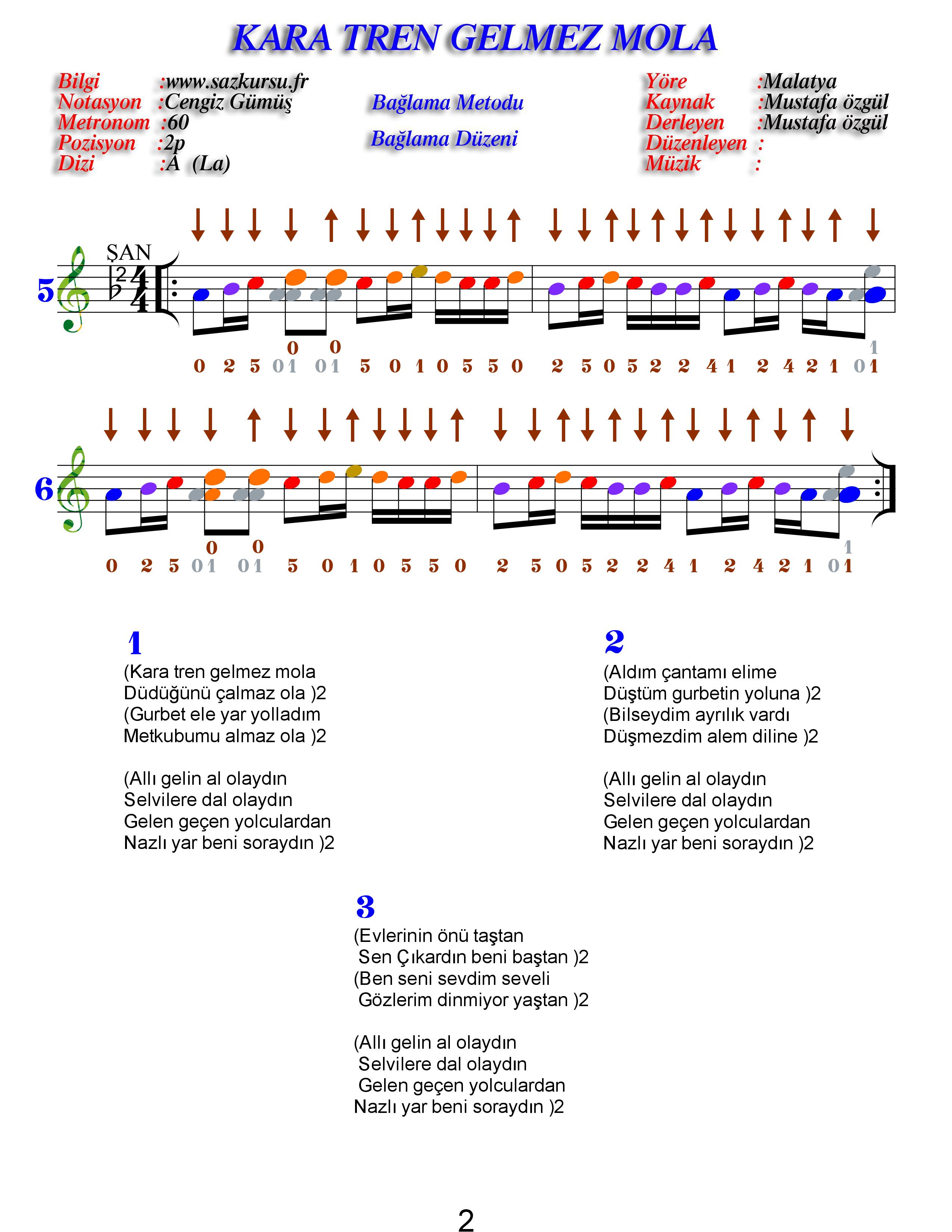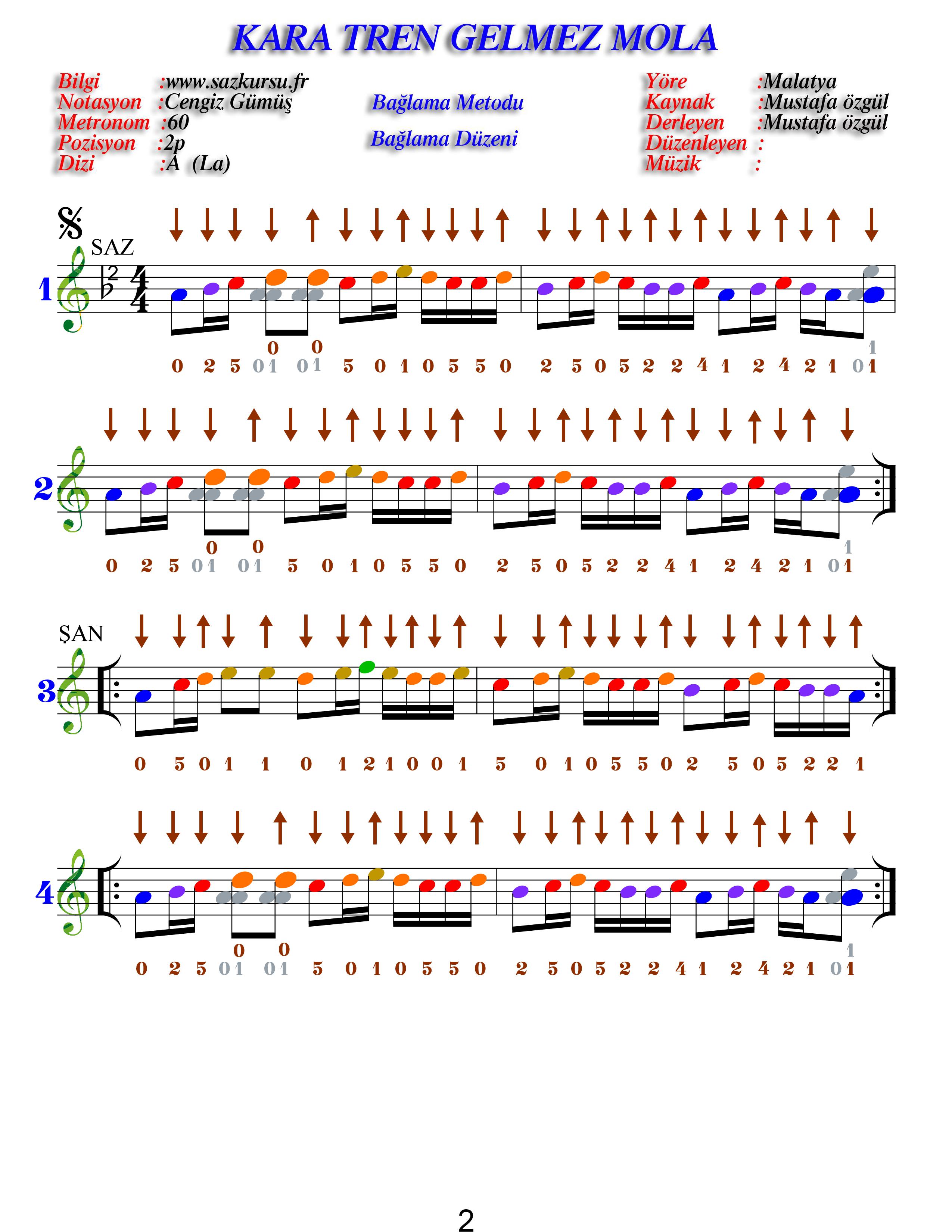 Kara Tren Başlangıç Düzeyi Renkli Türkü Notaları
