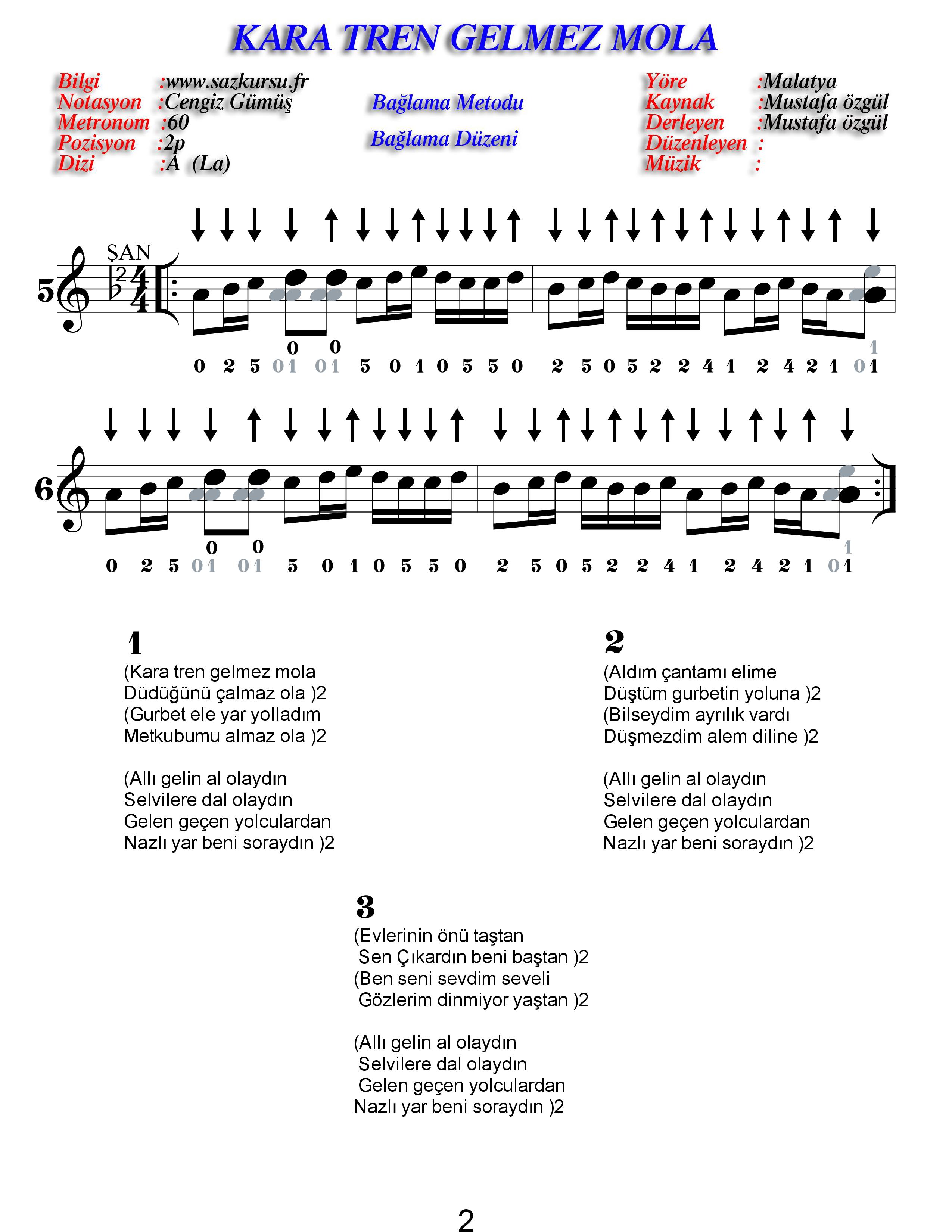 Kara Tren Başlangıç Düzeyi Renksiz Türkü Notaları