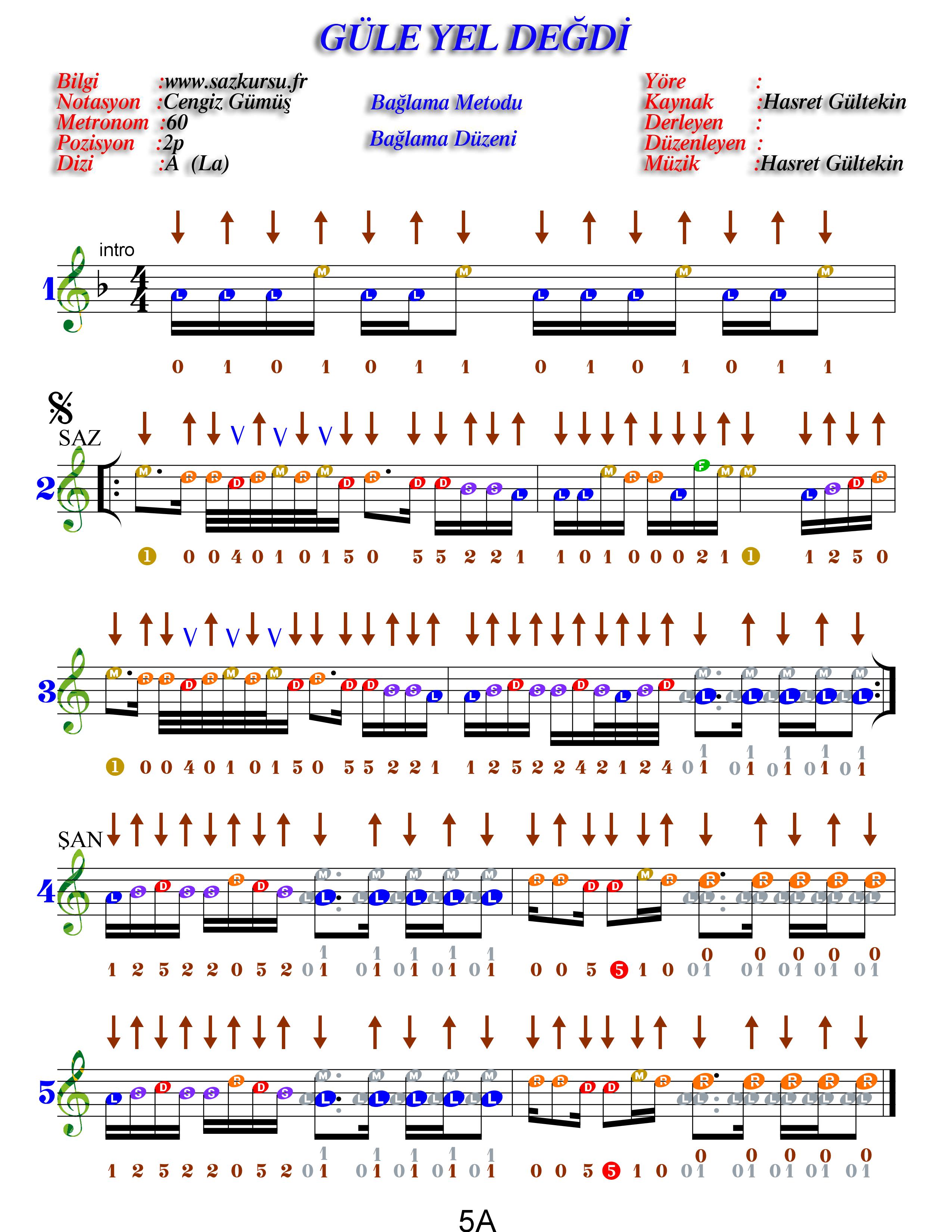 Güle Yel Değdi İleri Düzey Renkli Özel Türkü Notaları