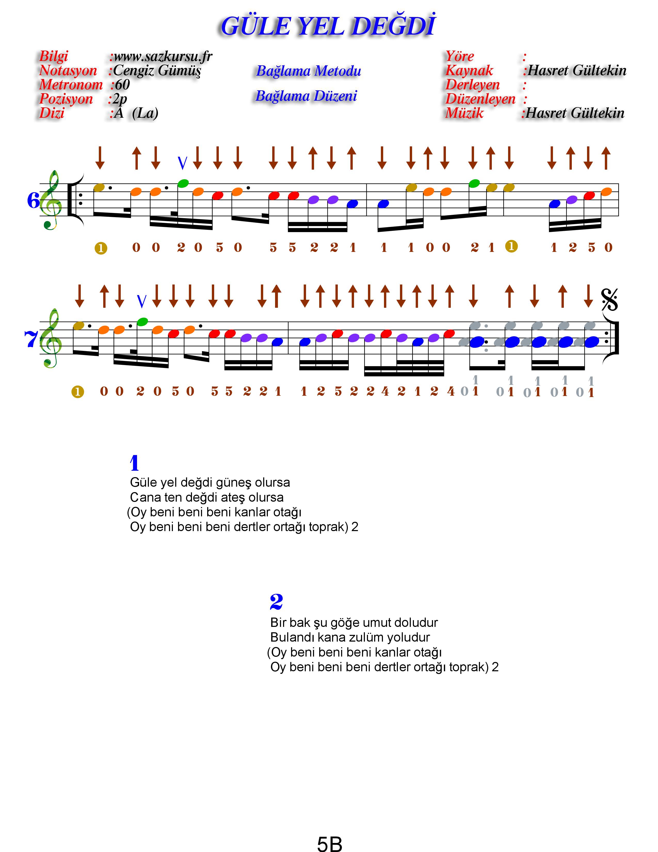 Güle Yel Değdi İleri Düzey Renkli Türkü Notaları