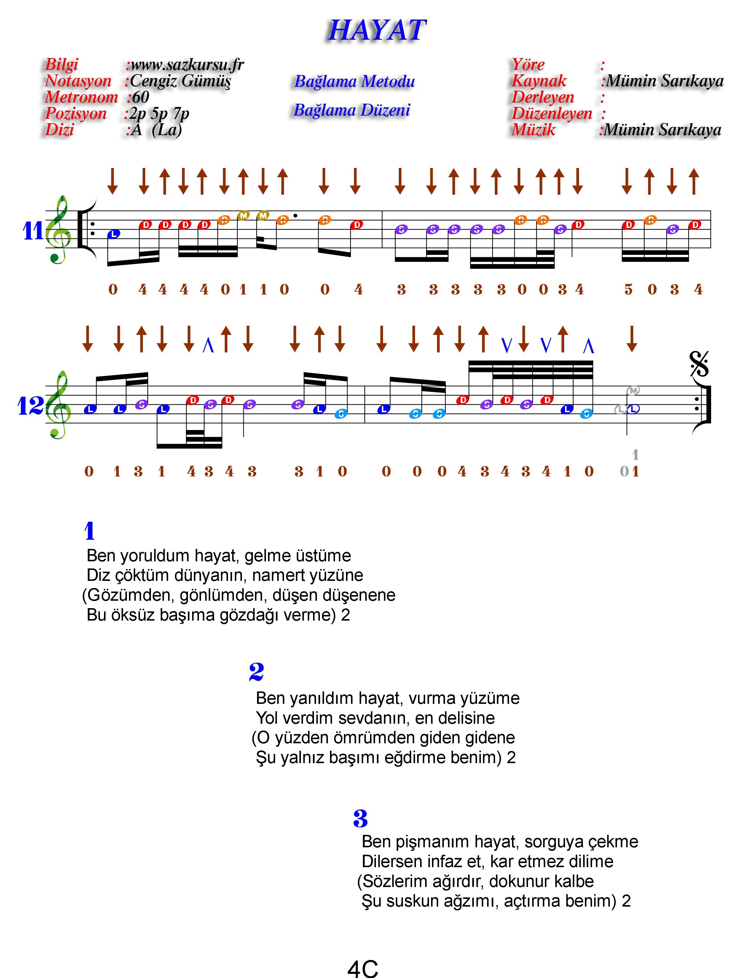 Hayat İleri Düzey Renkli Özel Türkü Notaları