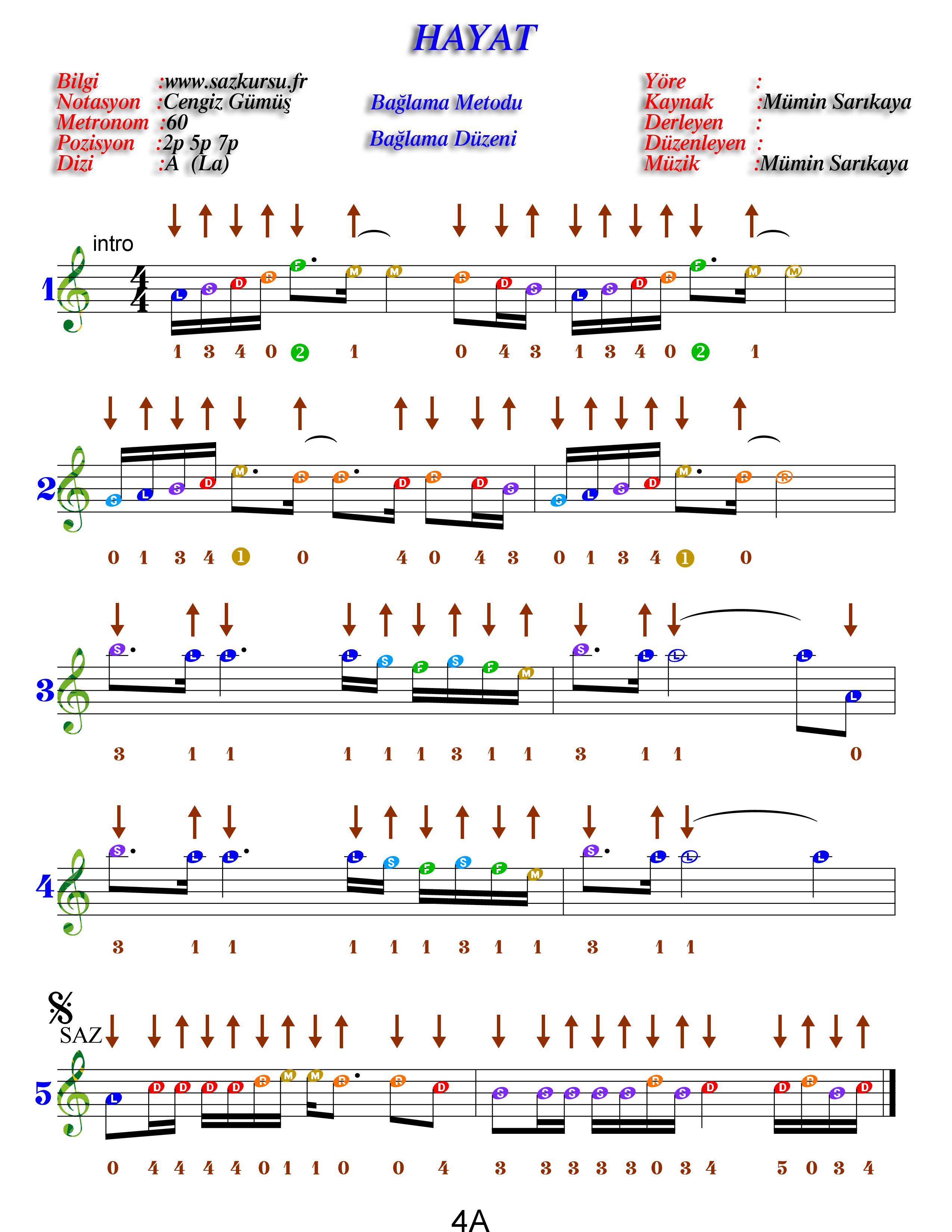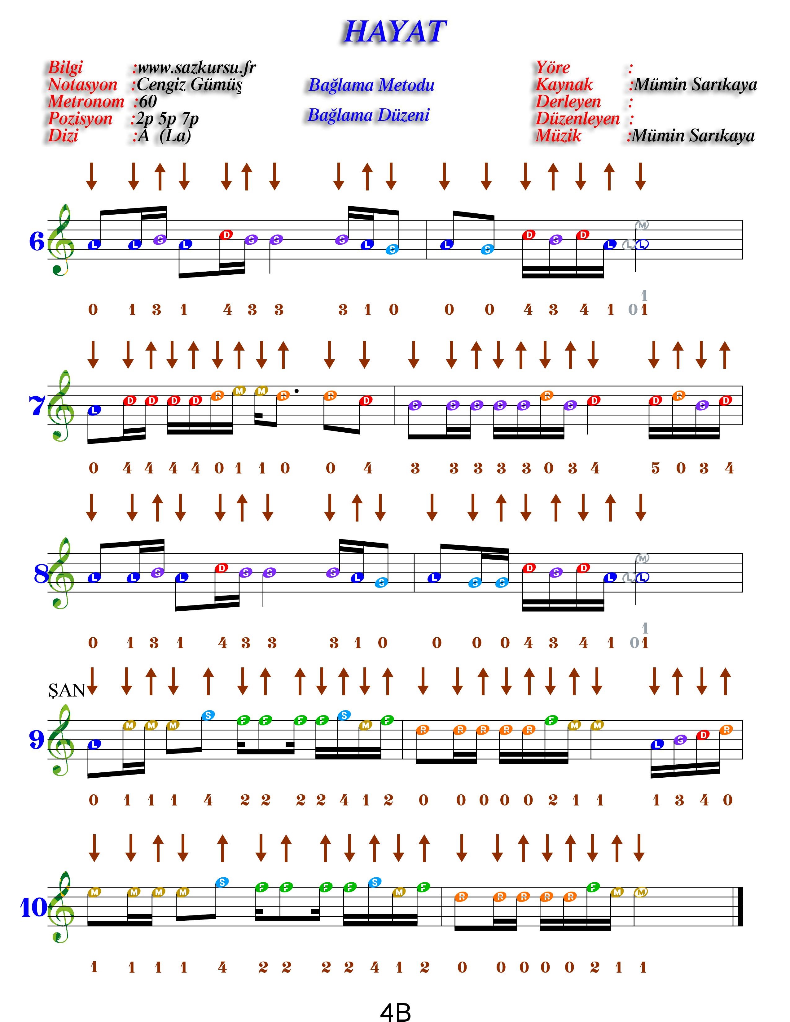 Hayat Orta Düzey Renkli Özel Türkü Notaları
