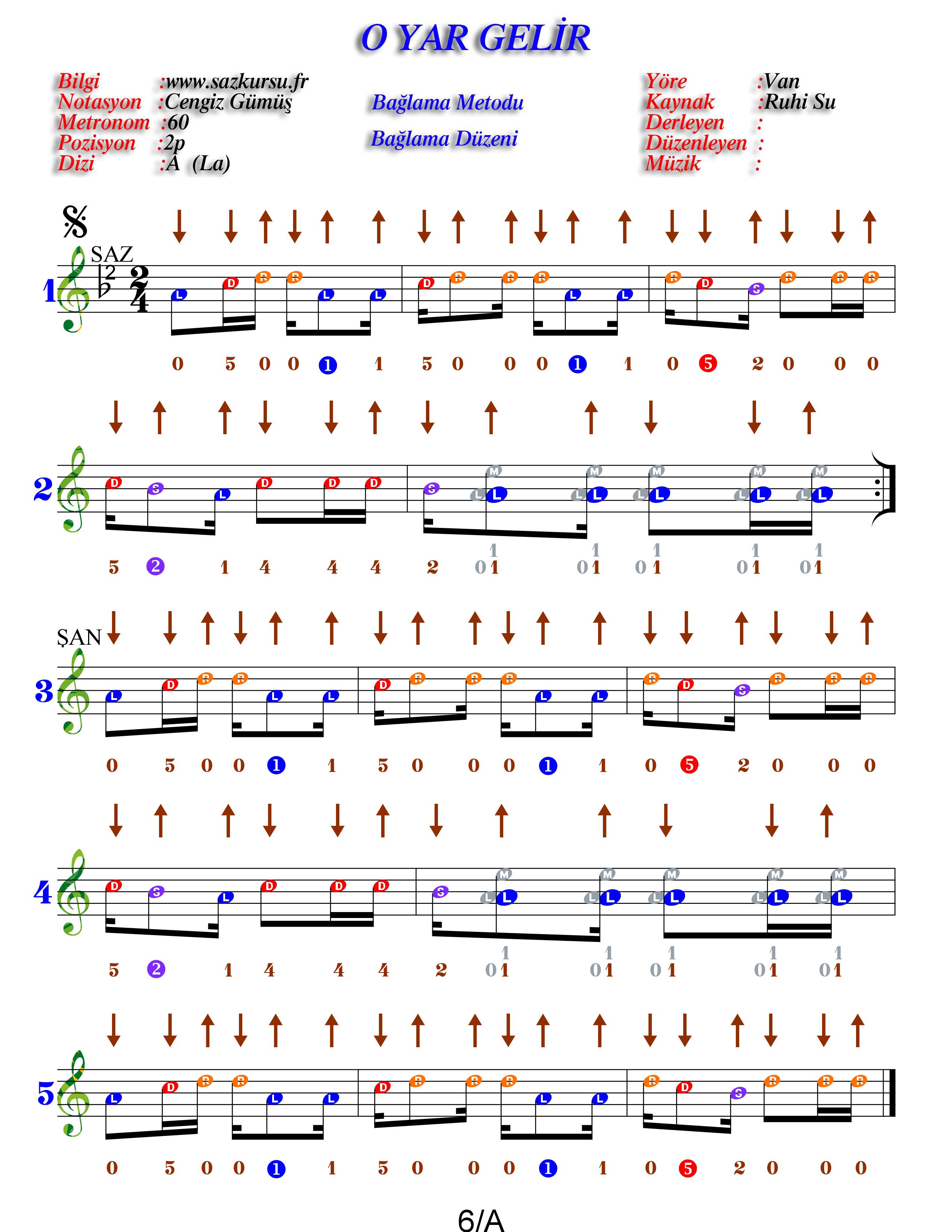 O Yar Gelir Başlangıç Düzeyi Renkli Özel Türkü Notaları