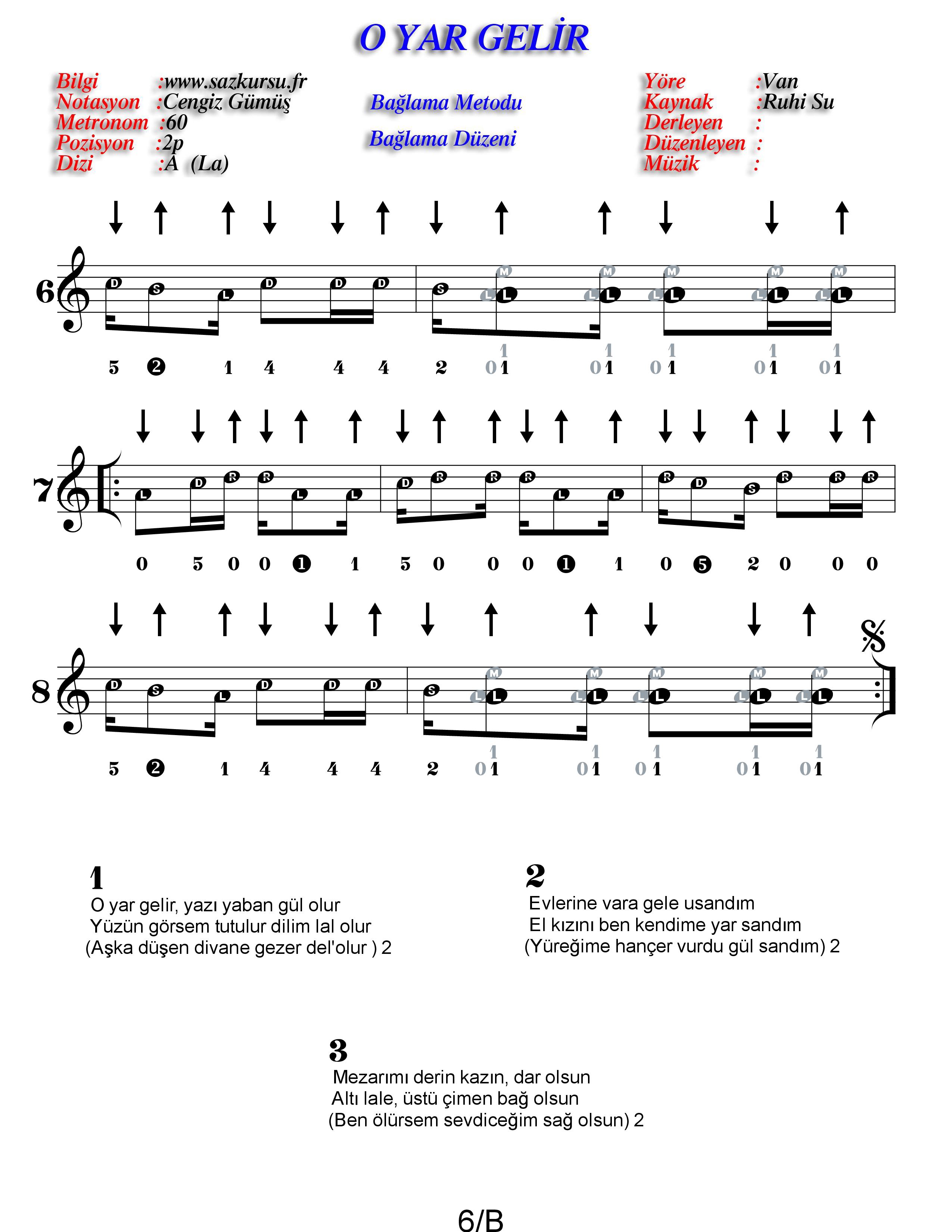 O Yar Gelir Başlangıç Düzeyi Renksiz Özel Türkü Notaları
